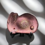 モダンな洋風なガラス皿に日本の伝統的な漆器技法を用い、色箔押しで煌びやかに赤べこを描写致しました。作者であります、会津在住の伝統工芸士であります中村光彩先生の赤べこは震災の復興とコロナ細菌の早い終息を願う世界を照らす光明を想い伺えます。以前から中村光彩先生と当店とでデザインや色彩等の打合せを続けて来ましたが、伝統的会津塗箔押し赤べこ額皿が完成いたしました。